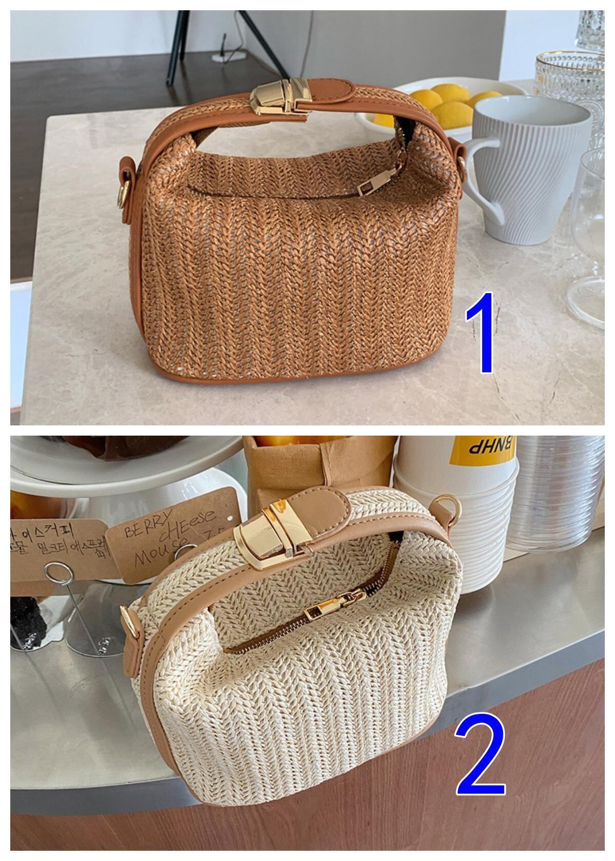 レディース・草編みパック・トートバッグ・肩掛け・斜めがけバッグ